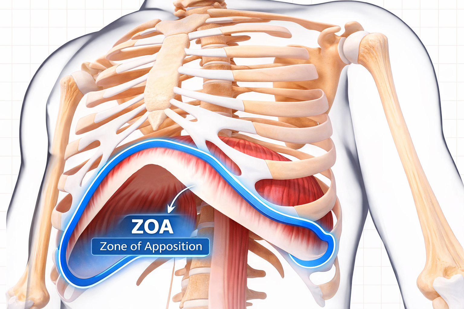 ここで少し専門的な補足をすると、横隔膜には ZOA(zone of apposition) という、